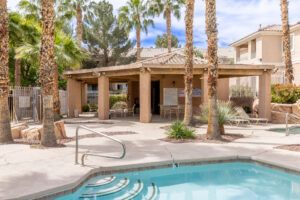 Seller is offering a $5,000 credit to the buyer. Welcome to this 1st floor 2-bedroom, 2-bath condo featuring a desirable floor plan, ideally located in the heart of North Summerlin near shopping, dining, parks, and scenic trails. Situated within the gated Silver Pines community and just a short walk from the community pool, residents enjoy access to a spa and well-maintained grounds. This unit offers a comfortable layout with a covered patio for outdoor relaxation and two renovated bathrooms, adding a modern touch. This North Summerlin gem delivers lifestyle, location, and value—all in one.