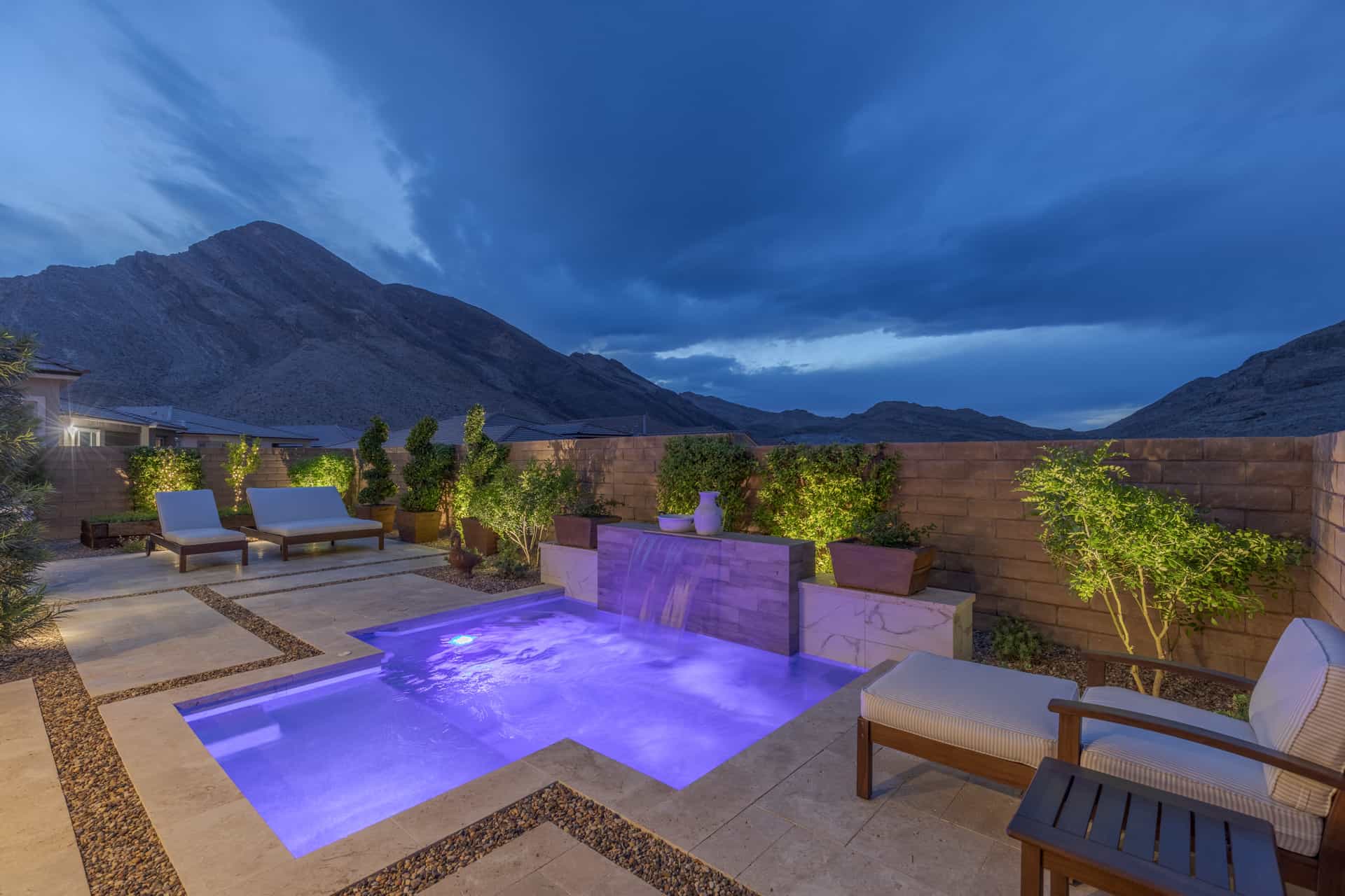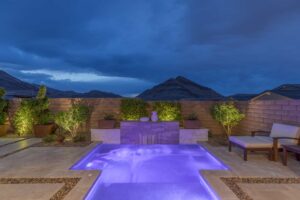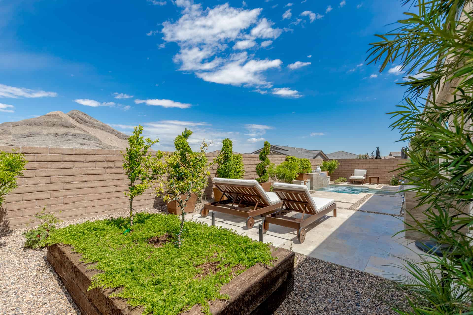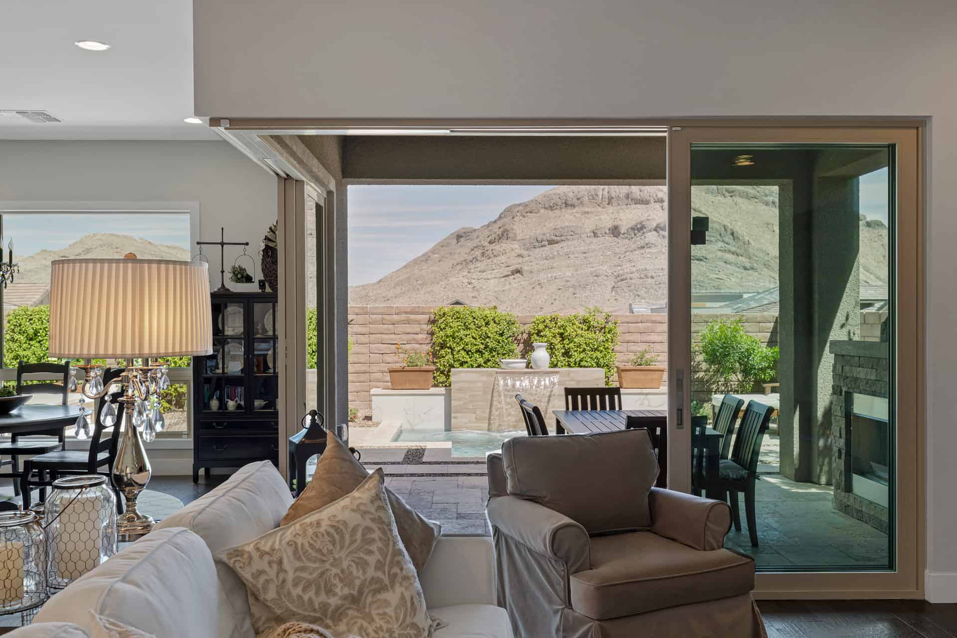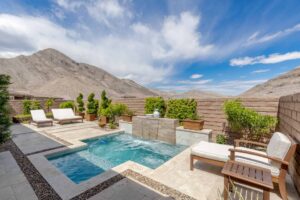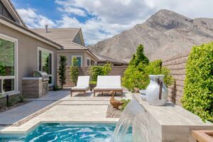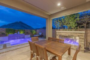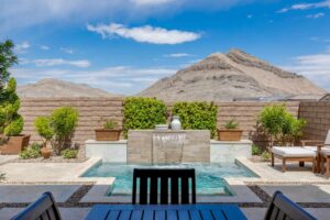 Beyond this home’s keyless front door, discover a modern, open floor plan with hardwood floors and quartz countertops. Savor life in the kitchen, complete with a dining island, soft-close drawers, and a suite of KitchenAid appliances—including a six-burner range with a griddle, pot-filler, and double ovens. Have dinner in the attached dining area, watch a surround-sound movie in the family room, or open the corner sliders to create an unparalleled indoor/outdoor living experience. Whether you’re dining fireside on the travertine patio, lounging in the Pebble Tec spool (spa/pool), or barbecuing on the built-in grill, you’ll always have peace, quiet, and mountain views. Backed up to a cul-de-sac, the unique position of this lot ensures that these views will remain. Rest and relaxation await in the owner’s suite, which boasts dual vanities, a makeup counter, a closet with built-ins, an oversized walk-in shower, and a generous freestanding bathtub. Two additional bedrooms complete this home, one of which features an en suite bathroom and walk-in closet. Smart home upgrades include a Nest doorbell and thermostats, a SimpliSafe security system, and Arlo solar-powered security cameras.