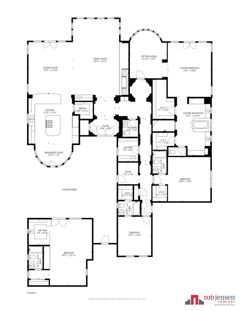 When the day is done, retire to the master suite for some quiet time in the sitting room or restful sleep in the private bedroom with rear yard access. The master bath provides all the amenities expected of a luxury home, including granite hers & his vanities, a separate makeup counter, and two generous walk-in closets with built-in shelving. Two additional en suite bedrooms with walk-in closets complete the main house. Perfect for guests, the spacious casita with wet bar and bath is accessible through the courtyard.