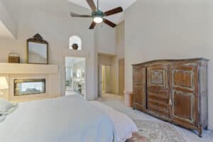 This is your opportunity to own a two-story home in Corta Bella, a 24-hour guard-gated community in Summerlin. Boasting double-height vaulted ceilings, this property feels incredibly spacious yet lives like a single-story—with the primary suite conveniently located on the main level.