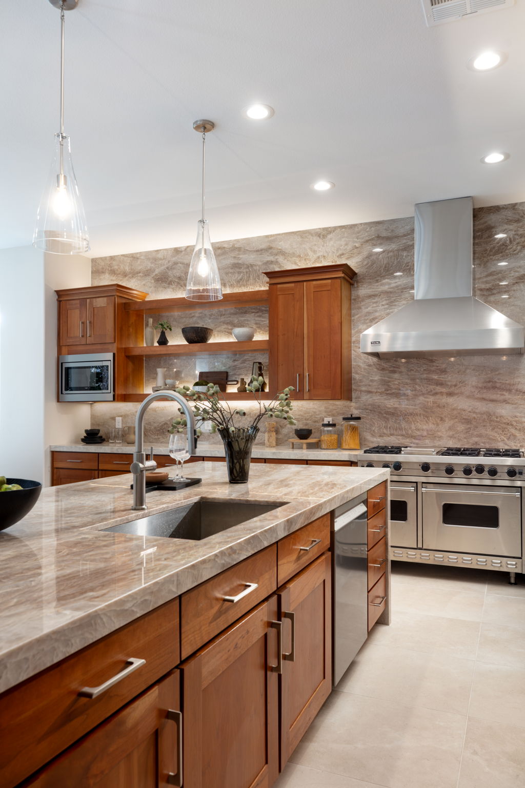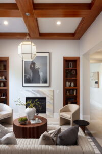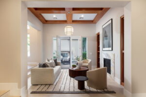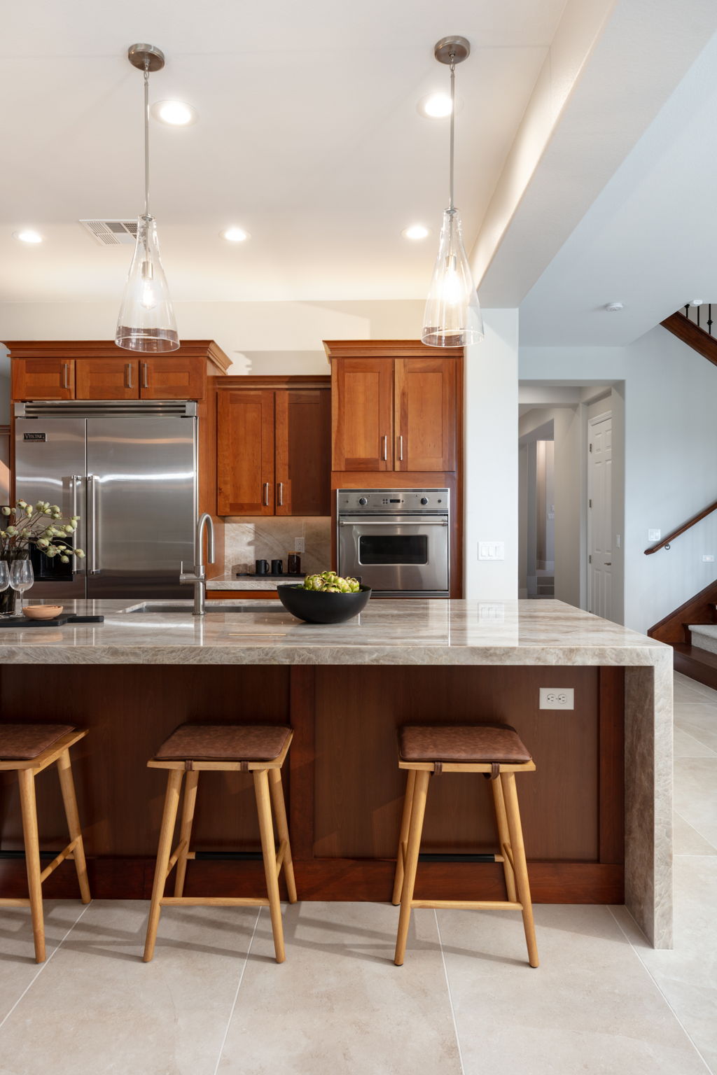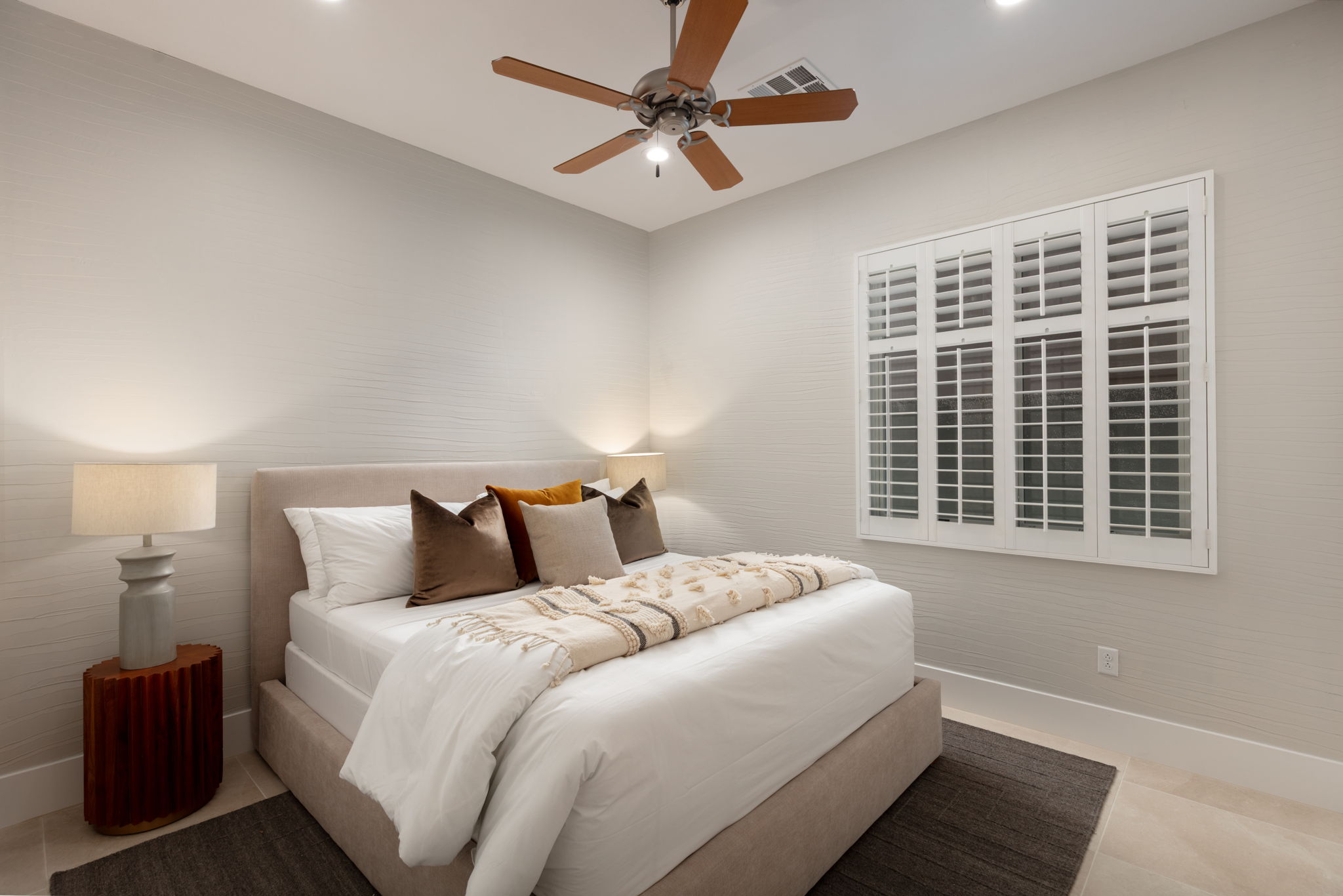 Greet your guests in the open and inviting living room, which connects to a peaceful courtyard through French doors. An enormous quartz waterfall-edge island defines the kitchen, complete with a suite of Viking Professional appliances and a new dishwasher. Beyond the butler’s pantry with built-in wine storage, dinner is served in the dining room. Enjoy a movie in the family room—which is wired for surround sound and features a new linear fireplace—or gather in the den for a game night. Anyone working remotely will appreciate the home office with full built-ins.