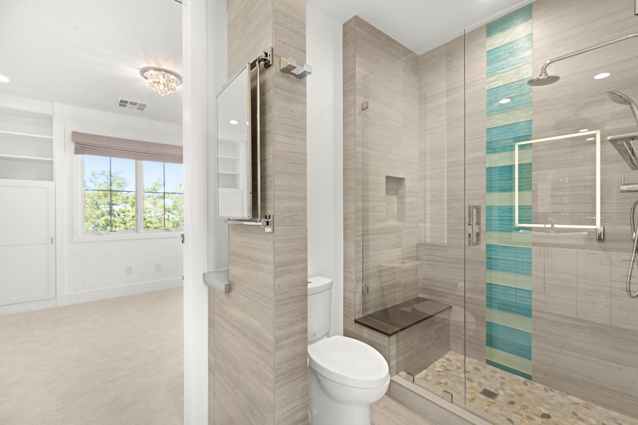 The upper-level owner’s suite is a spacious retreat with a wealth of amenities: a view balcony, his and hers toilets with a bidet, dual vanities, a beauty counter, a freestanding bathtub, a large shower with body jets, and a generous closet with a valet. Four additional bedrooms complete this home: two with en suite bathrooms and two that share a remodeled Jack & Jill bathroom. Additional highlights include new Nest Thermostats and a rare four-car garage with ample storage.