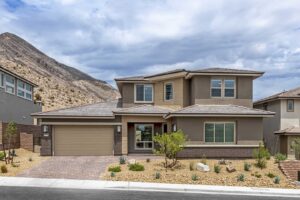 Perched on an elevated hillside lot, this two-story home boasts unmatched privacy and unobstructed mountain views in Reverence—an esteemed, guard gated, Summerlin community developed exclusively by Pulte Homes. Modern finishes include highly durable laminate wood flooring, quartz and marble countertops, and oversized picture windows that celebrate the view.