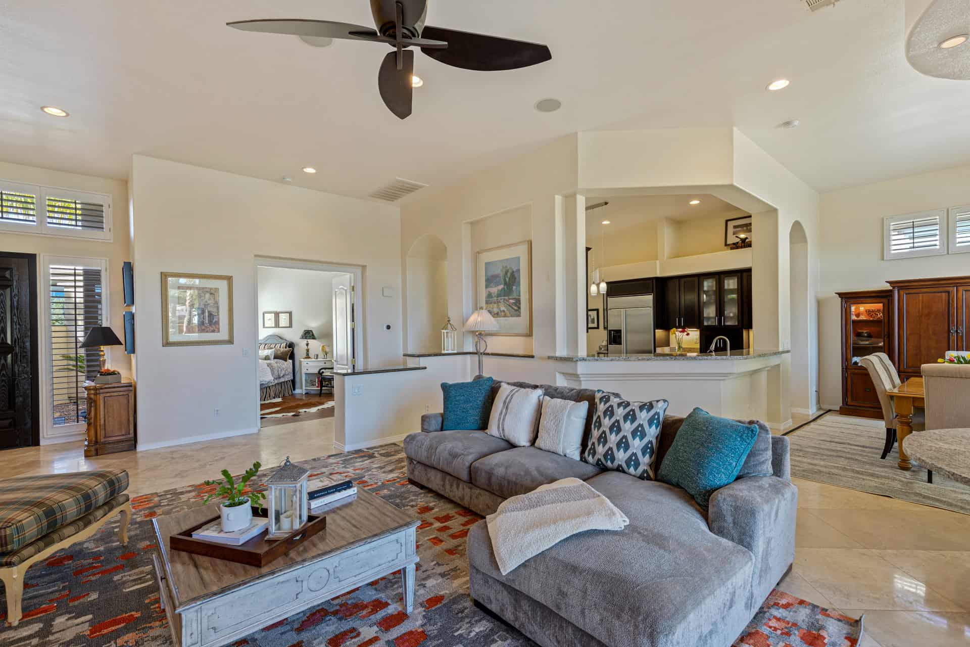 Discover peace and privacy beyond compare at this single-story home in Canyon Terrace, a gated neighborhood in the award-winning Summerlin master-planned community. Built on an elevated lot, this property enjoys an added level of privacy. Open and bright, the ranch-inspired floor plan is complimented by 12’ ceilings and oversized sliding glass doors and windows.
