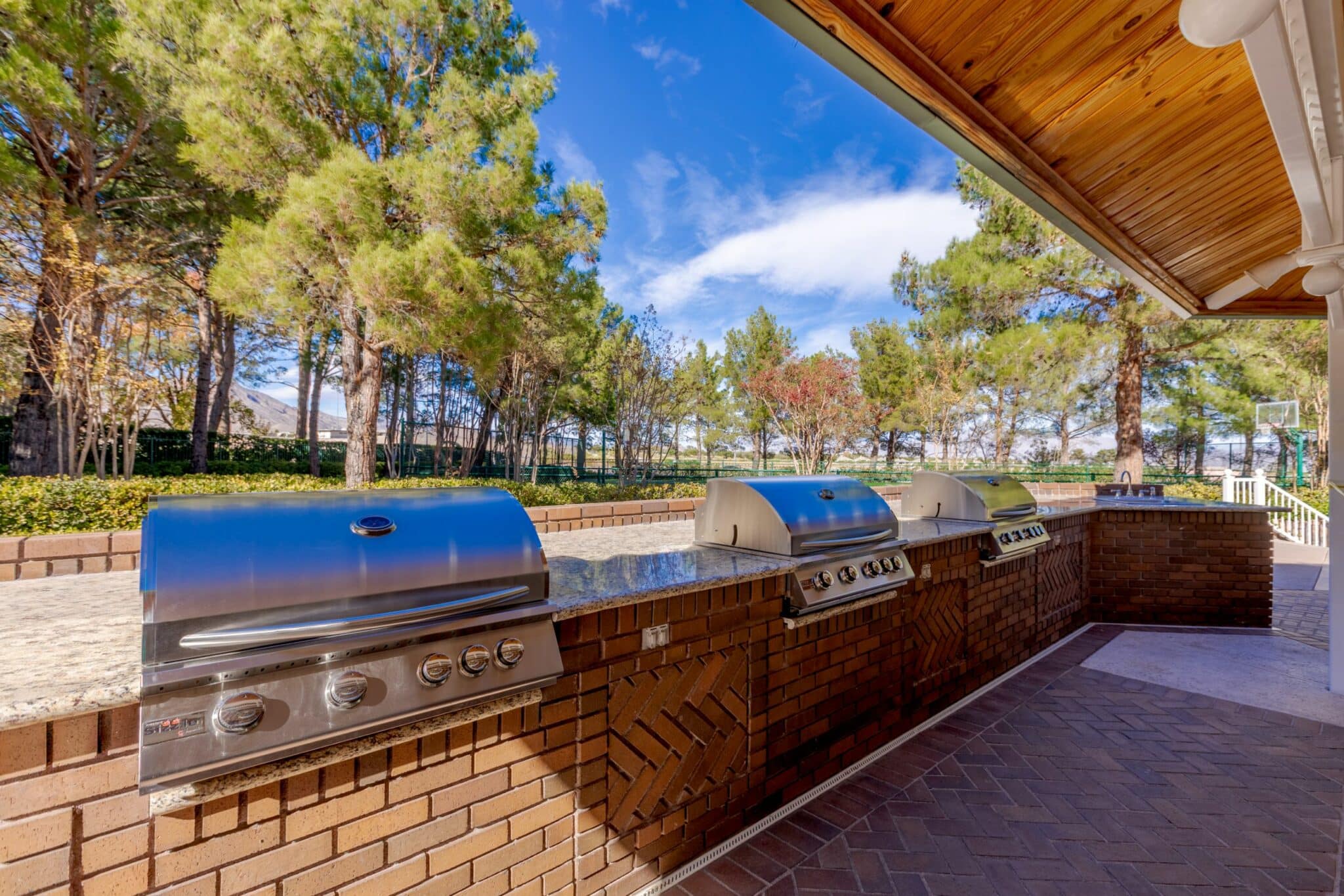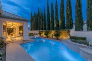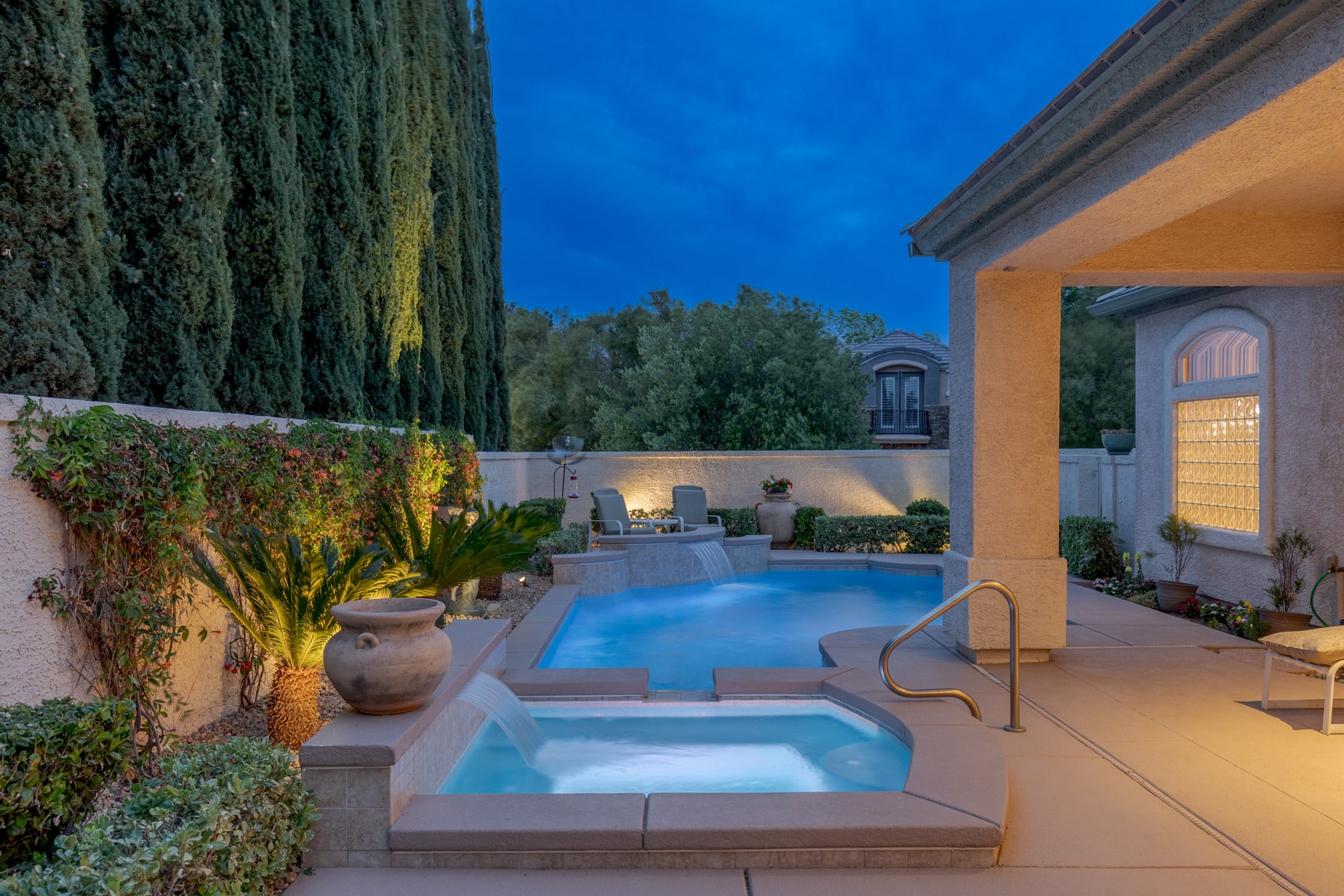 A secure and quiet lifestyle awaits at this single-story home in the guard-gated community of Queensridge. Built on a 9,583-square-foot corner lot, this property showcases a spacious floor plan and a private backyard with a pool and spa.