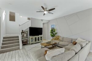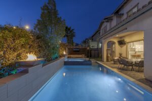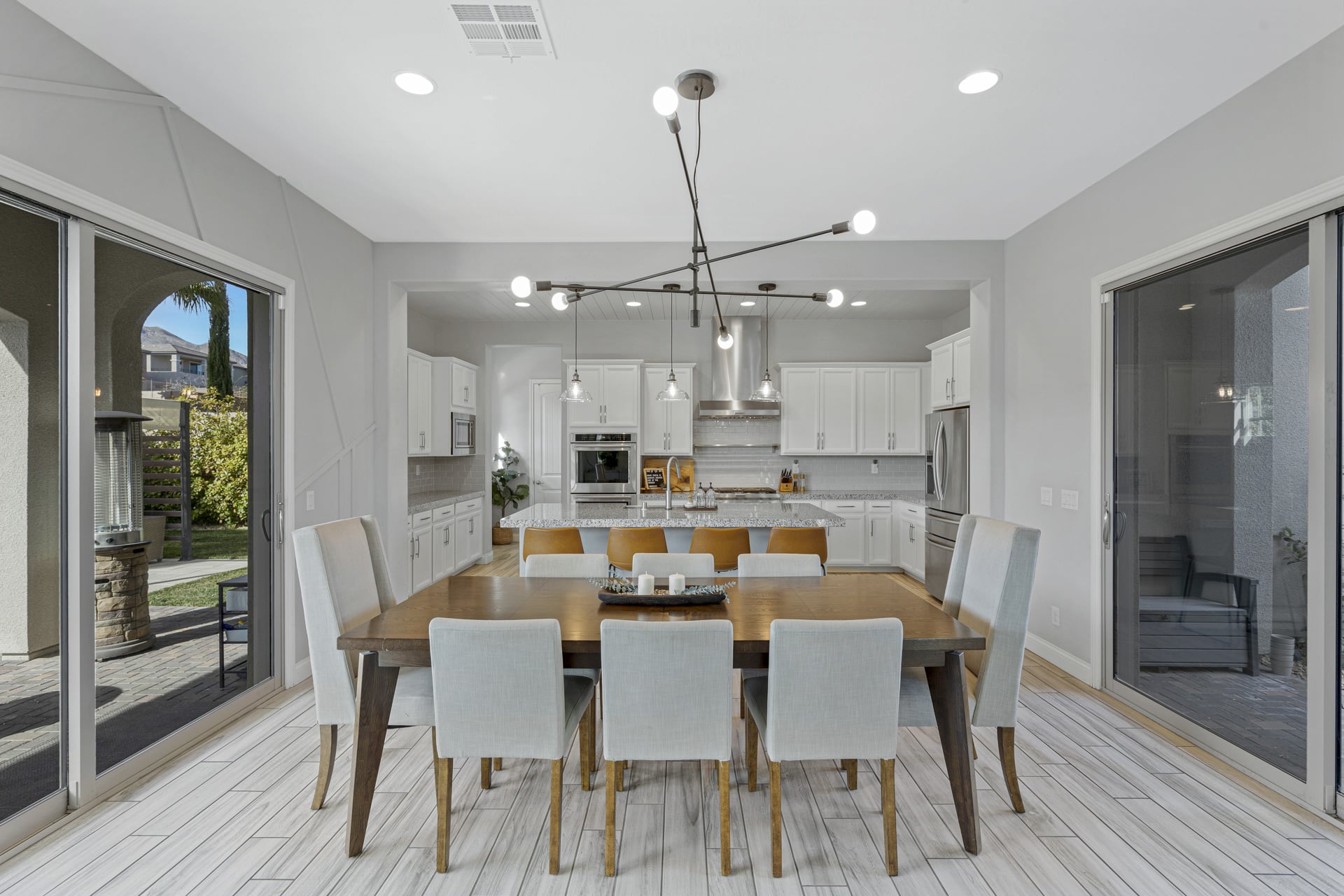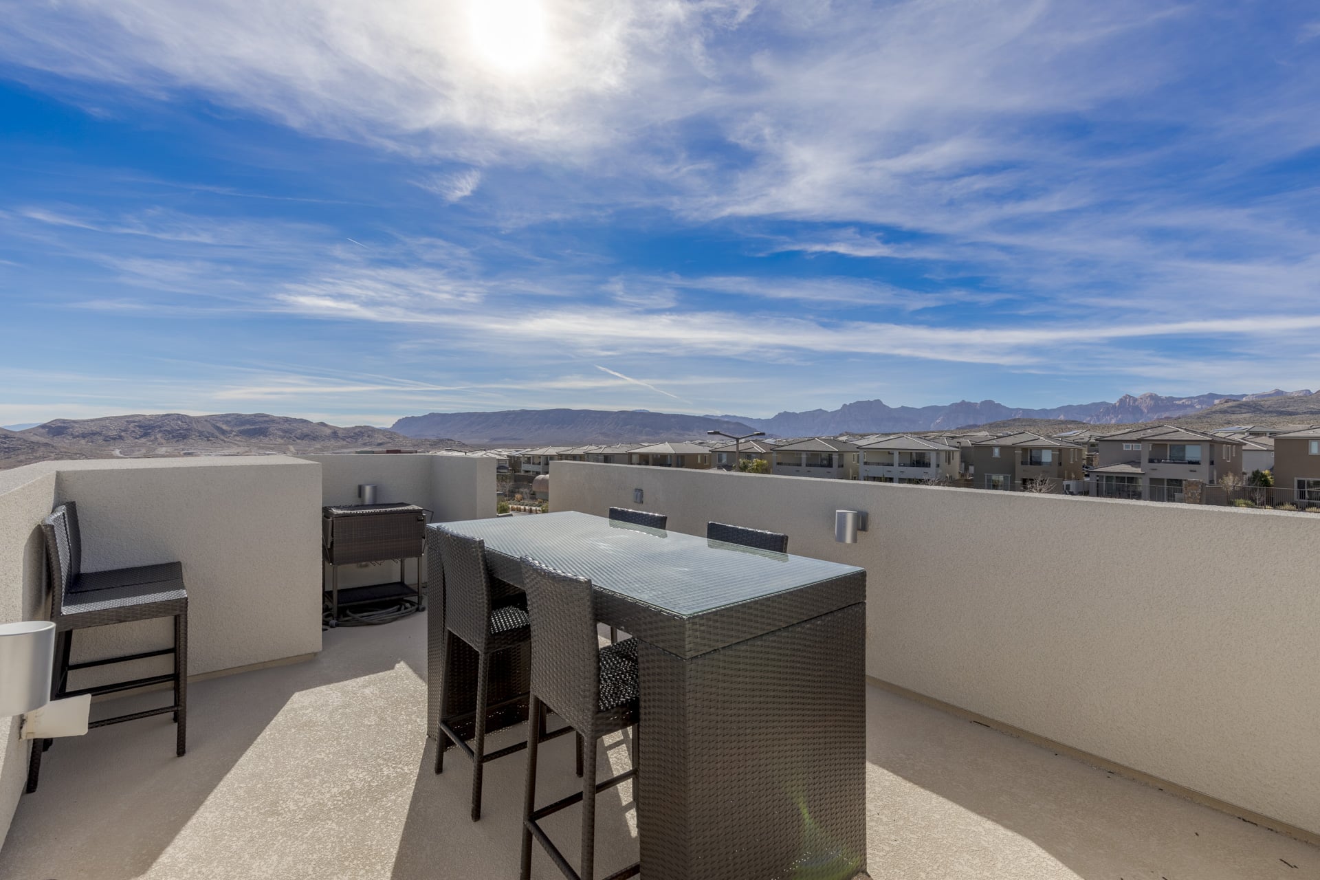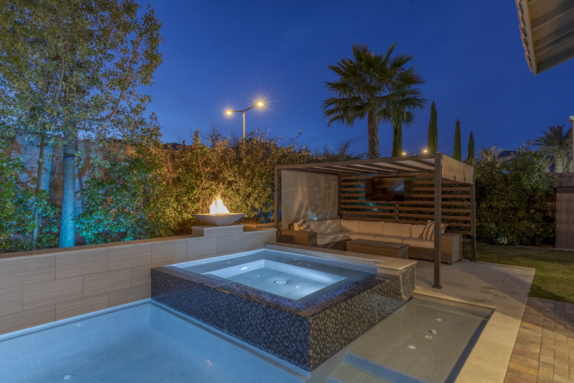 Discover unobstructed 360º views of the Las Vegas Strip and Red Rock Canyon from the rooftop deck of this gorgeous two-story home. Located in a gated community within Summerlin’s Paseos village, this property is perfect for anyone that loves to relax in the beauty of their own home. As you enter, you are welcomed by custom wall accents and an open floor plan. On the main level, expand the living space by opening two oversized stacking sliders to create a seamless flow from the courtyard to the pool.