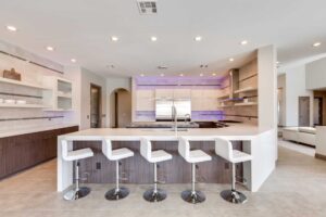4959 Spanish Heights Drive presents the rare opportunity to own a custom single-story estate in Spanish Hills, an exclusive 24-hour guard gated community in Las Vegas. Situated on a .34-acre lot, this spacious home boasts a full remodel worth $317,500! Clean lines, 18×36-inch tile, and tray ceilings are the touchtones of this modern marvel.