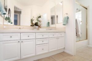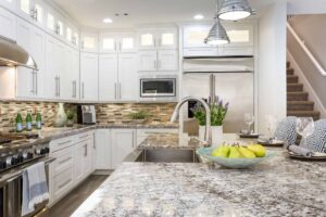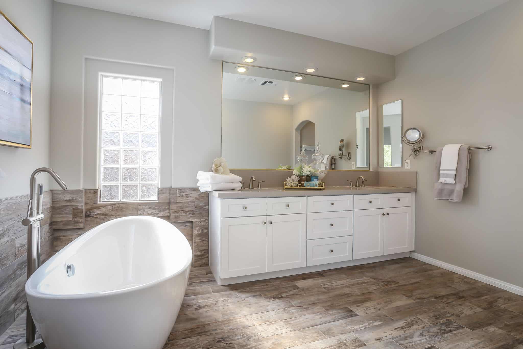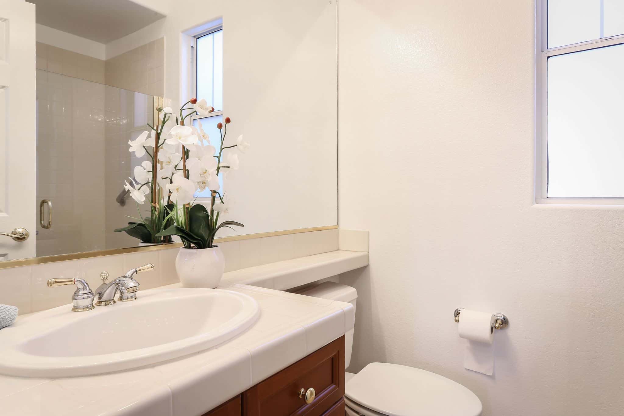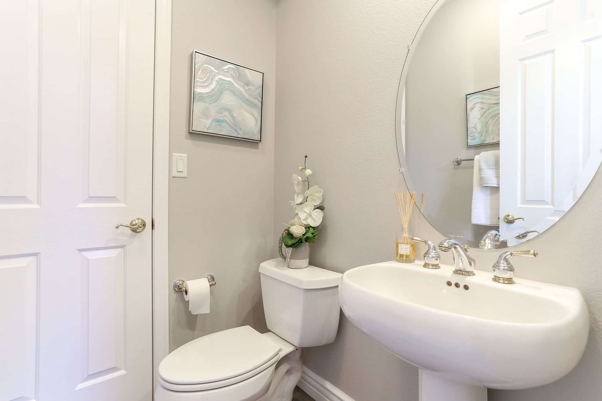 Staircases on either side of the house provide easy access to the upper level, where you’ll find the master suite with sitting room. Recently renovated to suit modern tastes, the master bath features new cabinets, countertops, and floors, upgraded closets, a free-standing tub, and a walk-in shower with dual heads and a bench. A den, loft space, and three additional bedrooms complete this home, one of which features an en suite bathroom and walk-in closet.