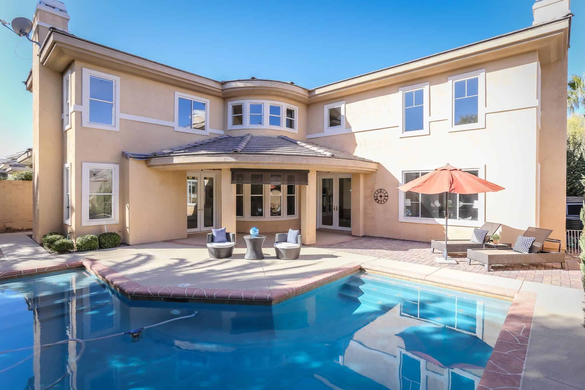 Discover over $175,000 in upgrades at this two-story home in Eagle Rock—a 24-hour guard gated community located among some of the best shopping, dining, and golf courses that Summerlin has to offer. Beyond the en suite casita and gated paver courtyard, you’ll find a freshly painted interior with porcelain tile and new carpet.