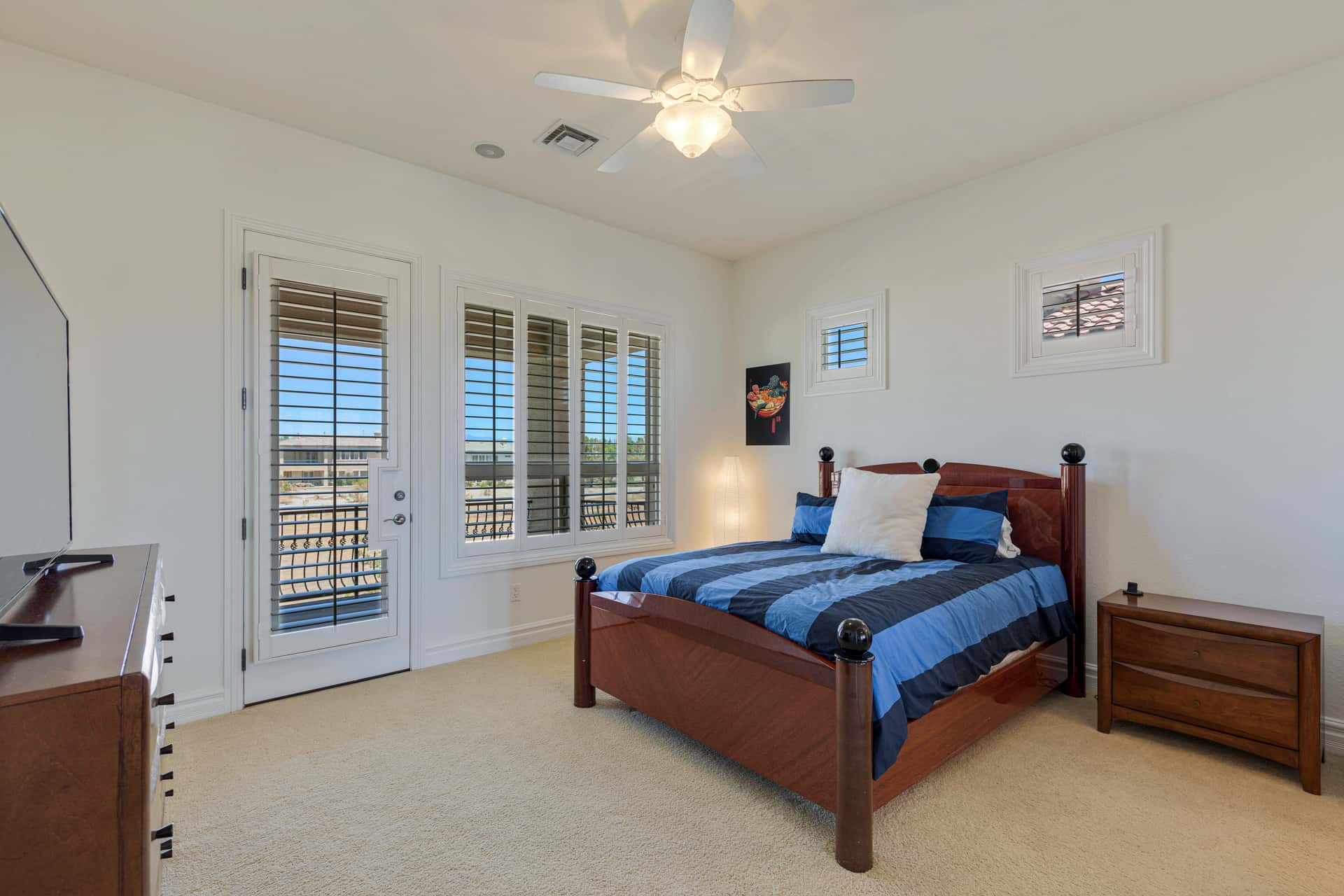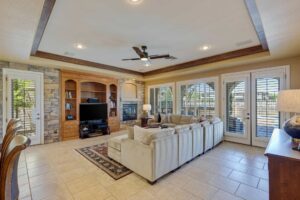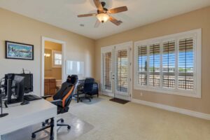 Conquer your day in the office, which opens to the courtyard, then retreat to the upper-level owner’s suite. Amenities include a large balcony with stairs down to the courtyard, a gas fireplace, a walk-in rainfall shower, an oversized jetted tub, dual vanities, and a beauty counter. Four additional bedrooms complete this home: two on the upper level with a Jack & Jill bathroom, one en suite on the upper level, and one en suite on the main level that opens to rear yard. Additional highlights include a generous loft space, a multi-camera security system, and new water heaters.