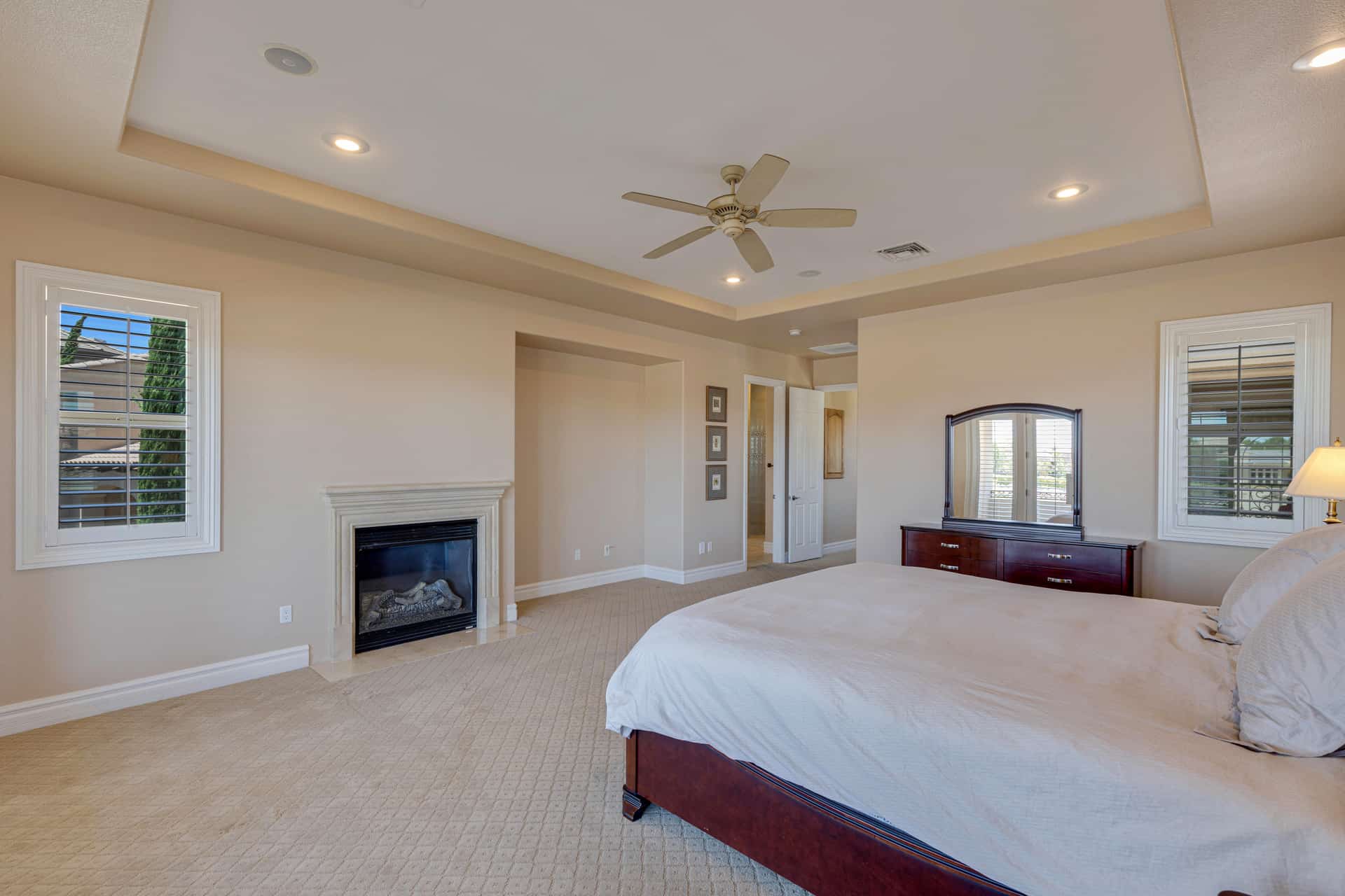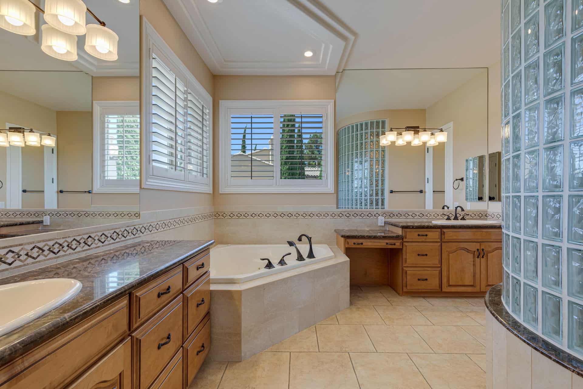 Greet your guests in the heart of the home, an expansive living and dining space with double-height ceilings and oversized picture windows. Savor life in the kitchen, complete with two islands, a suite of GE Monogram appliances, and a pair of LG dishwashers. Dine casually at the bar or in the bright dinette, which opens to the courtyard through French doors. Surround-sound movie nights await in the great room, or you can head out back to enjoy the pool, spa, covered patio, and outdoor kitchen. For ultimate convenience, the pool bathroom is accessible from the side of the house.