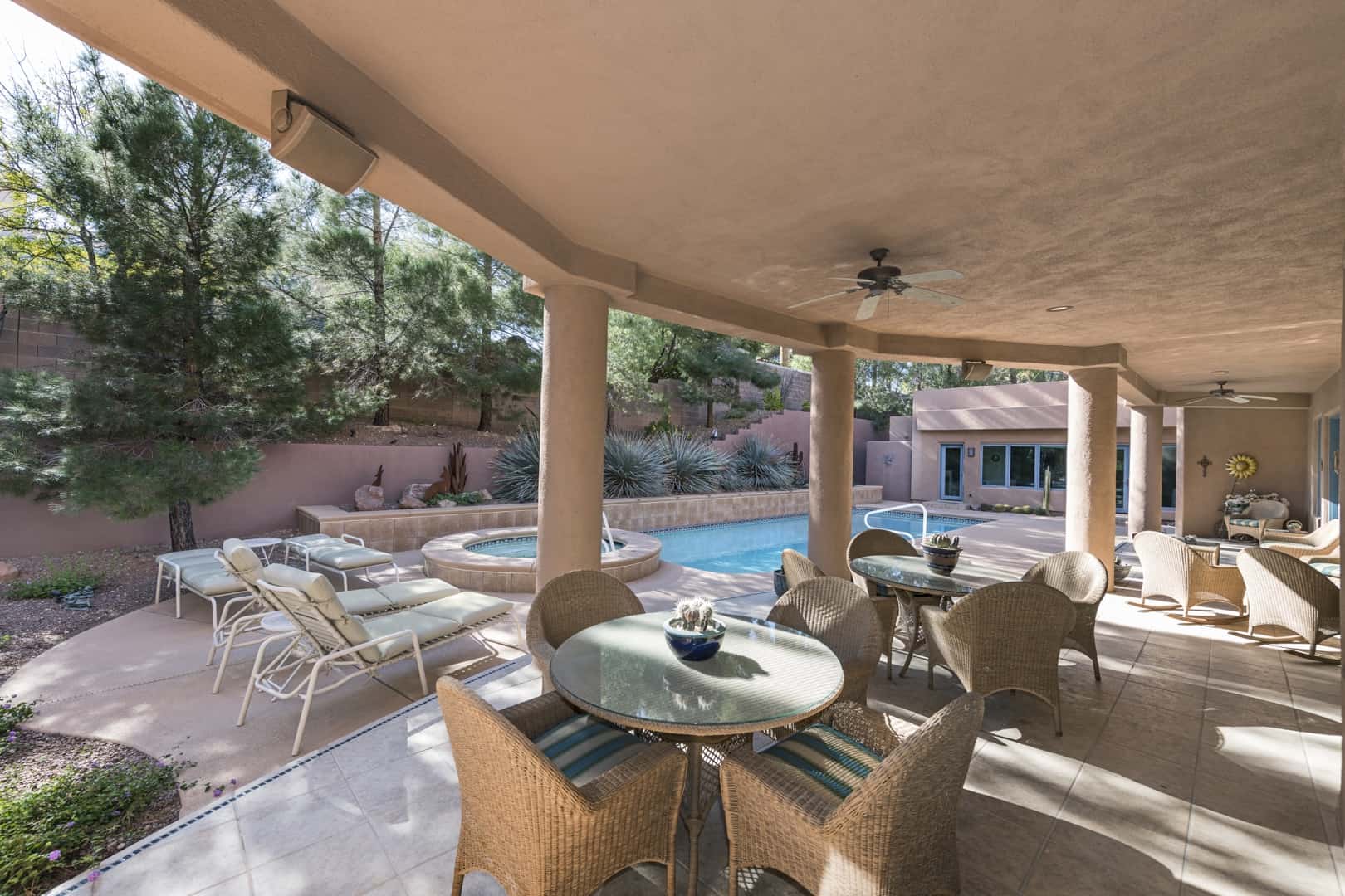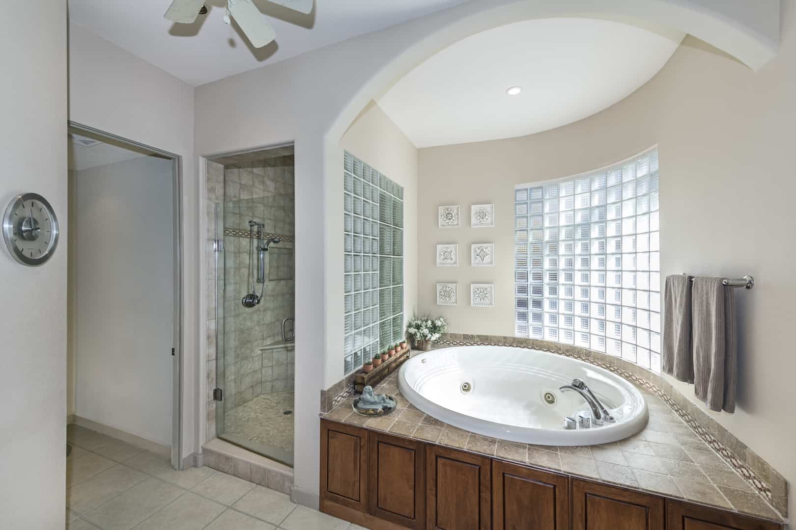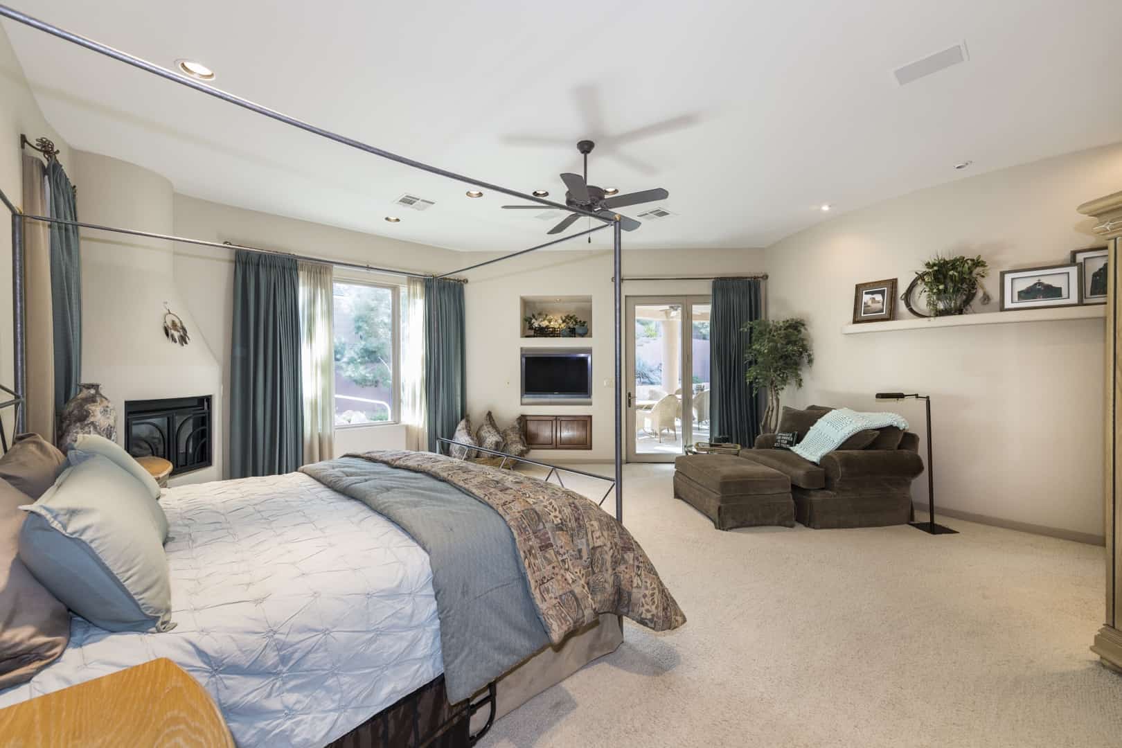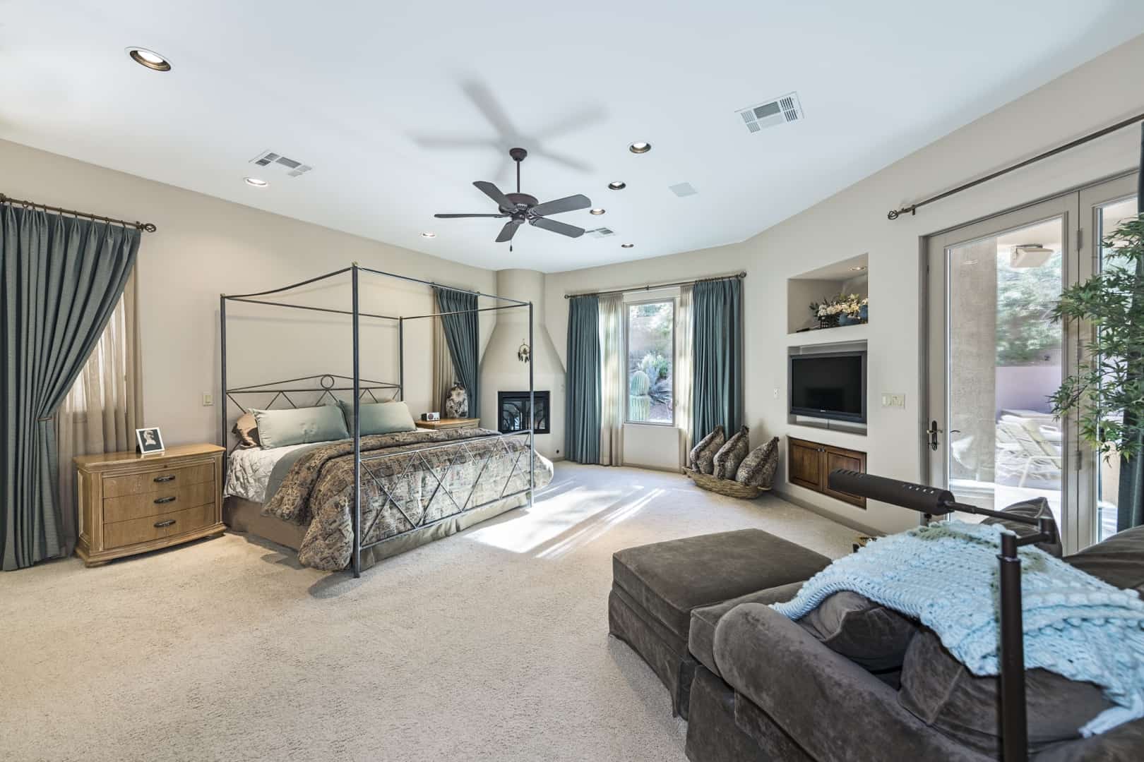When relaxation beckons, the main level master suite awaits with a slew of amenities, including an oversized jacuzzi tub, a shower with a bench and body wand, as well as hers and his vanities and toilets. Completing the main house are three additional en suite bedrooms—one of which enjoys private access on the main level—and a game room loft with a wet bar. Located beside the pool, the casita includes a kitchenette, bathroom, and walk-in closet, making it ideal for use as a pool house, guest house, or in-law suite.